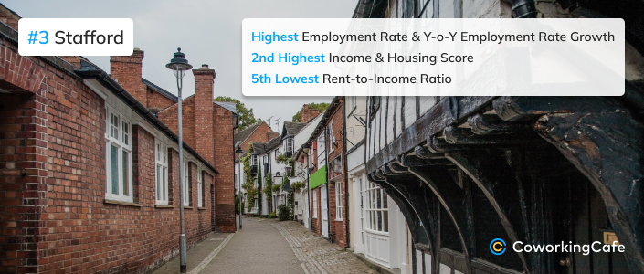 - Stafford emerges as the most employment-secure city, boasting the highest employment rate while also seeing the strongest Y-o-Y increase in this metric.