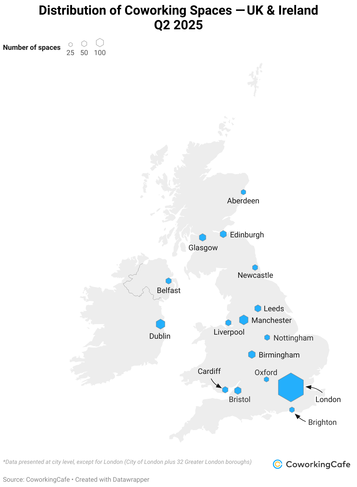 The UK is home to 3,949 coworking locations as of Q2 2025, while Ireland accounts for 250 with Dublin alone contributing nearly half of the country’s total.