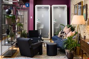 IQ Offices' members enjoy exposed brick walls, soaring 11’ ceilings, maple hardwood floors, operable windows, abundant natural light, contemporary office furniture, ergonomic designer executive chairs, laser fast networked Internet, printer/copier/scanner/fax on each floor, strike card protection, multiple breakout, conference and meeting rooms.