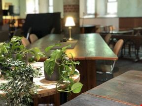 We have large collaboration tables, smaller tables, comfy seating areas, coffee bar-with unlimited free tea & coffee- access to high speed Wi-Fi, use of a co-worker fridge, podcast & meeting room/nap room…all inside a working church.