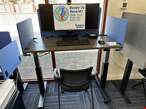 DropBy Office Business Center - Work- Print - Ship DropBy for co-working sit stand desks, dock, or full MAC r PC Workstations. Record a podcast in our studio, or use the Flex room as a conference room or training room. The Privacy booth keeps your meeting private. DropBy Office's print shop can Copy, Fax or Print from business cards to Banners. Modern MailBox Rental / Virtual Office offerings to receive mail and packages.
