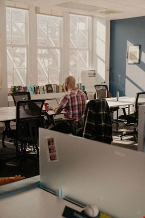 Housed inside the Technical.ly newsroom on the 12th floor of the Curtis Center at 601 Walnut Street, Co.Author is housed inside a building historic to the publishing industry, with a cozy atmosphere and inspirational views.
